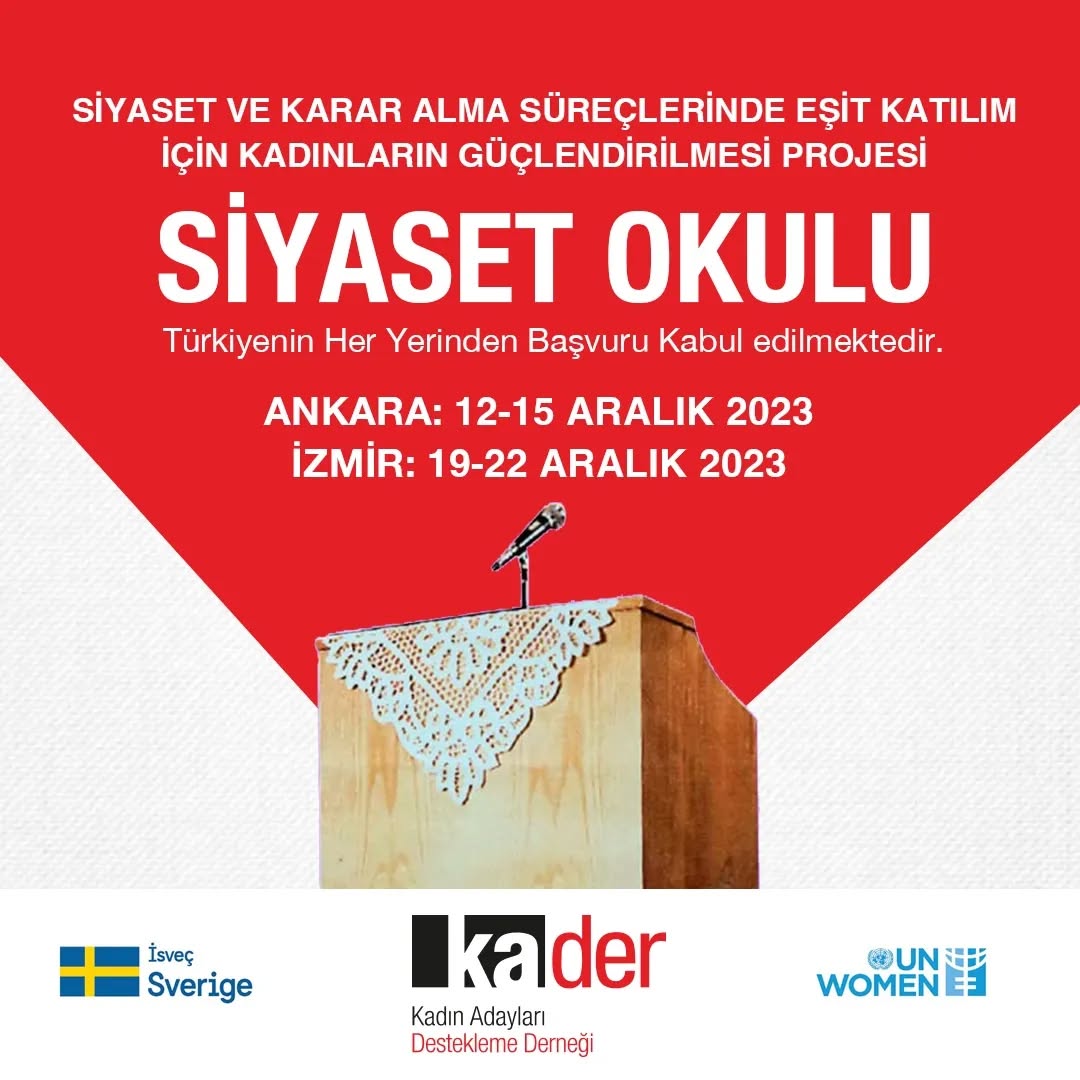 Kadın Adayları Destekleme Derneği (KA.DER), UN Women Türkiye tarafından yürütülen ve İsveç Büyükelçiliği’nin İsveç Uluslararası Kalkınma ve İşbirliği Ajansı aracılığı ile finansal destek sağladığı “Kadın Liderler” programı kapsamında “Siyaset ve Karar Alma Süreçlerinde Kadınların Güçlenmesi Projesi”ni uygulamaktadır.