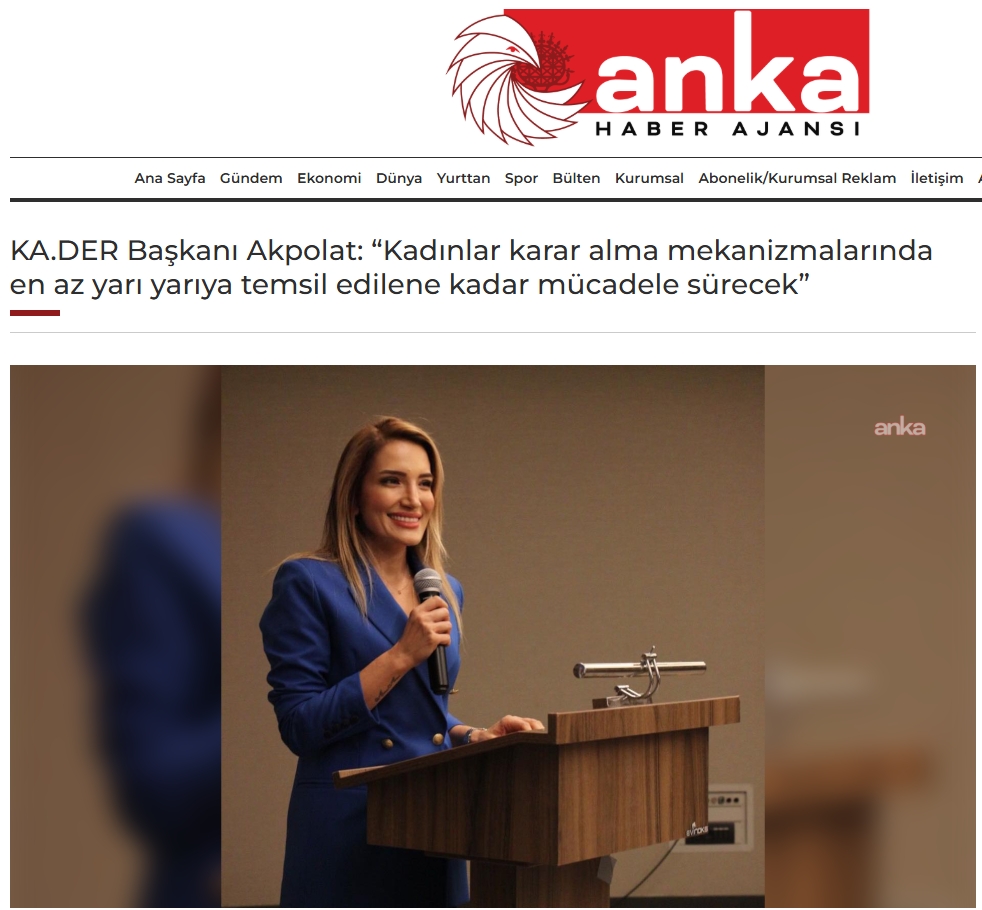 Basında Biz ANKA | KA.DER Başkanı Akpolat: “Kadınlar karar alma mekanizmalarında en az yarı yarıya temsil edilene kadar mücadele sürecek” 5 Aralık 2025