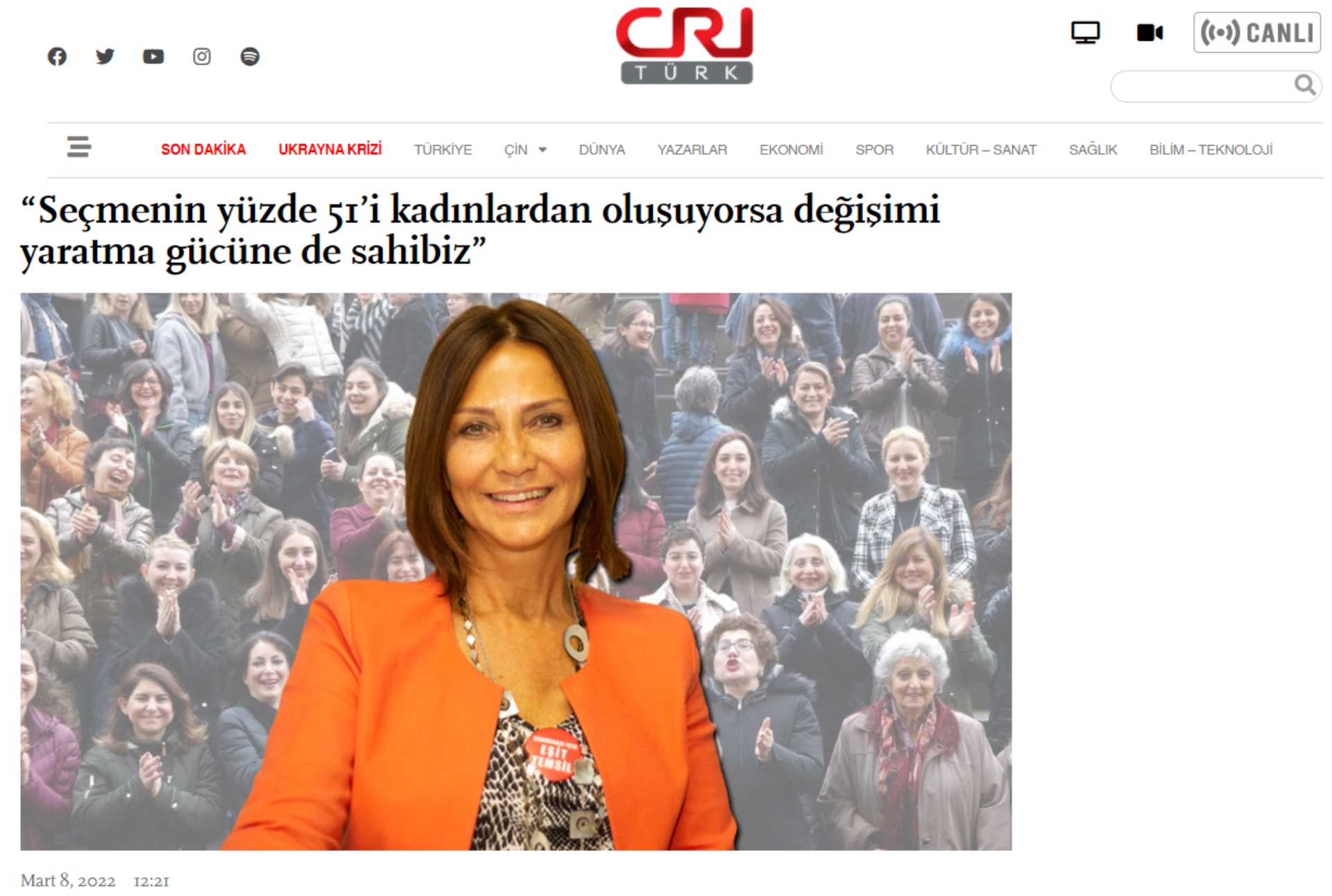 Kadın Adayları Destekleme Derneği (KA-DER) Başkanı Nuray Karaoğlu, 8 Mart Dünya Emekçi Kadınlar Günü’nde CRI Türk’te Tuğçe Akkaş’ın hazırlayıp sunduğu “Dünya Postası” programına konuk oldu. Karaoğlu, kadın hakları konusundaki gelişmeleri değerlendirdi.