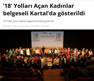 Kartal Belediyesi Kadın ve Aile Müdürlüğü, Kartal Belediye Meclisi Toplumsal Cinsiyet Eşitliği Komisyonu ve KA-DER’in iş birliği ile gösterime giren belgesel, ‘5 Aralık Kadınlara Seçme ve Seçilme Hakkı tanınmasının 88’inci yıl dönümü dolayısıyla izleyiciler ile buluştu.