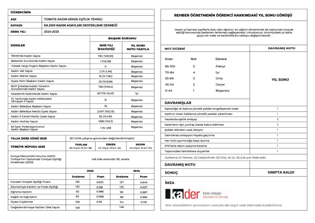 KA.DER | 2025 Kadın-Erkek Eşit Temsil Karnesi