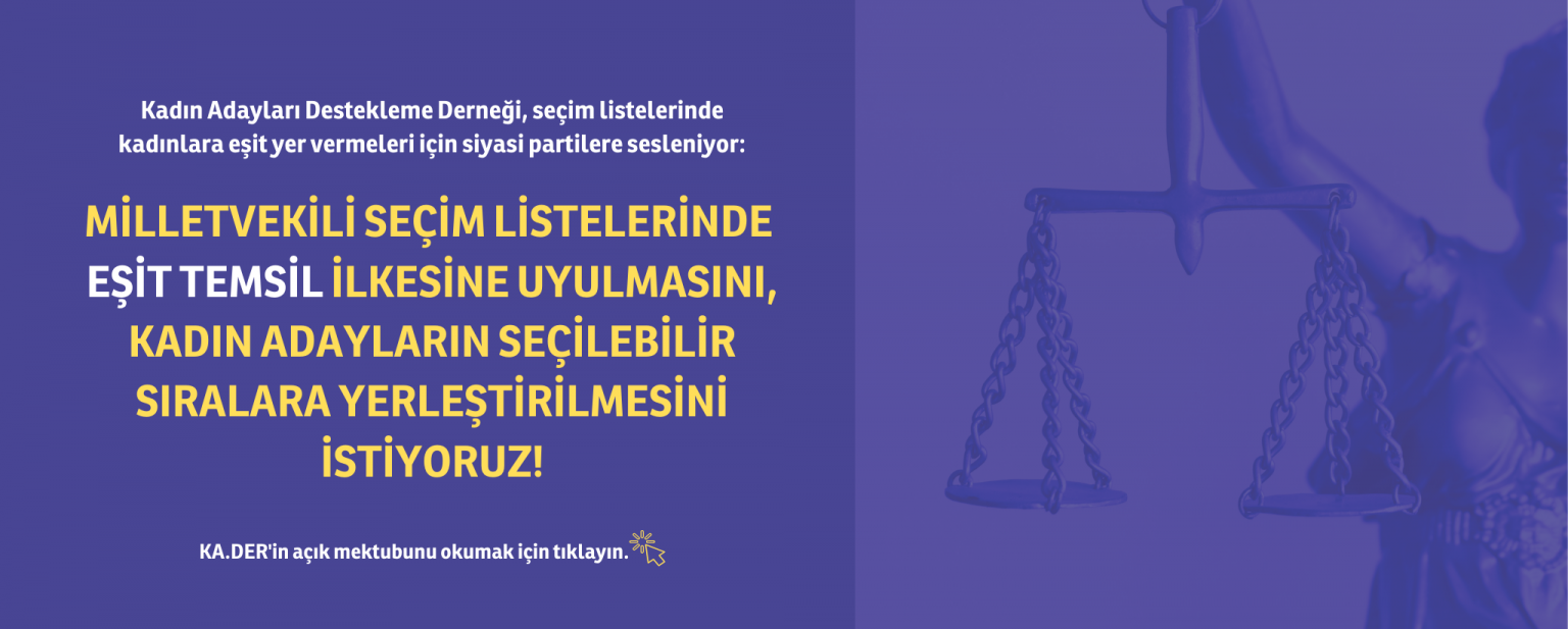 Türkiye Cumhuriyeti’ni yönetmeye talip sizlerin, bu seçim sürecinde daha çok kadınlardan yana olmanızı, eşit katılım için kadınları seçilebilir ve gerçekçi sıralardan aday göstermenizi bekliyoruz.