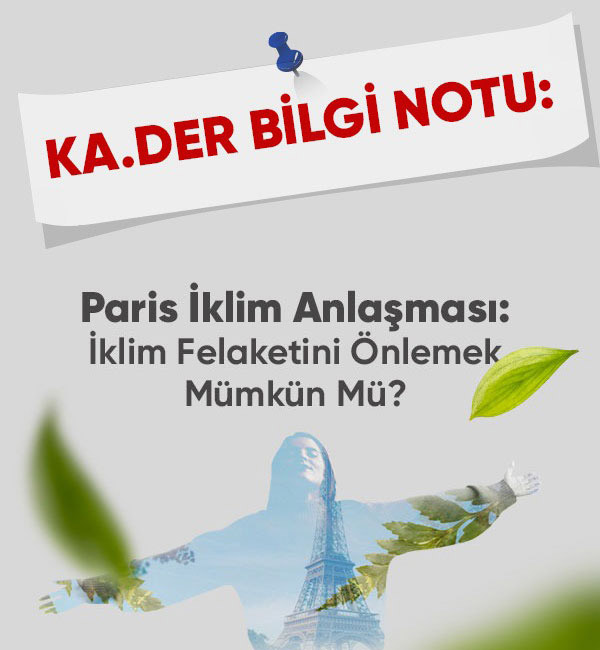 İklim değişikliği ile mücadele amacını taşıyan Paris İklim Anlaşması TBMM’ye sunularak onaylandı. Türkiye’nin çevre ve iklim politikalarında yeni bir dönemin başlamasına neden olacak bu anlaşma hakkında siz değerli KA.DER üyelerine bilgi vermek isteriz.